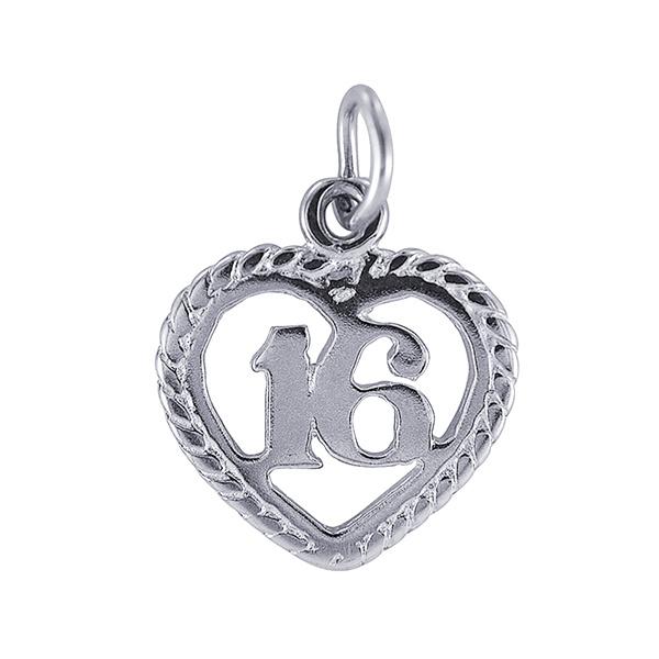 STERLING SILVER CHARM NUMBER 16 INSIDE A HEART