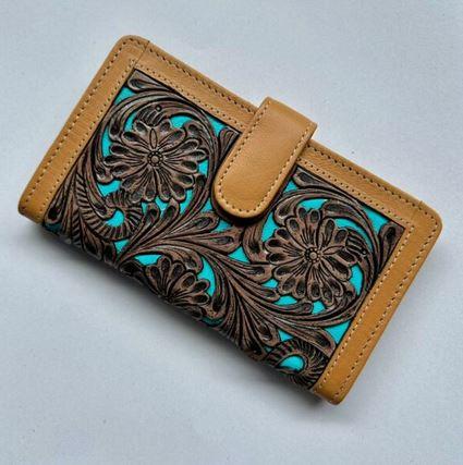 TAN TURQUOISE LEATHER WALLET