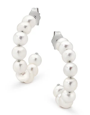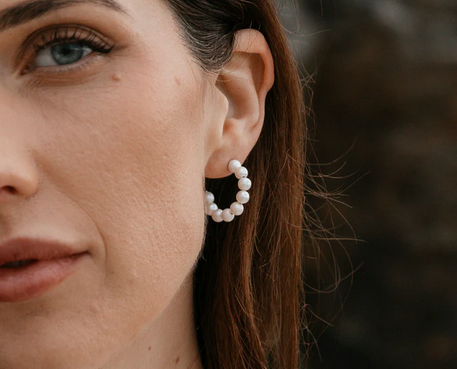 Mirroring the sky when speckled with white clouds, these earrings are a beautiful addition to your jewellery collection. Featuring our signature pearl style in a hoop stud setting, they’ll add a touch of whimsical beauty to any type of look.