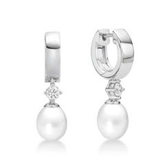 STERLING SILVER FRESHWATER PEARL DANGLE HUGGIES